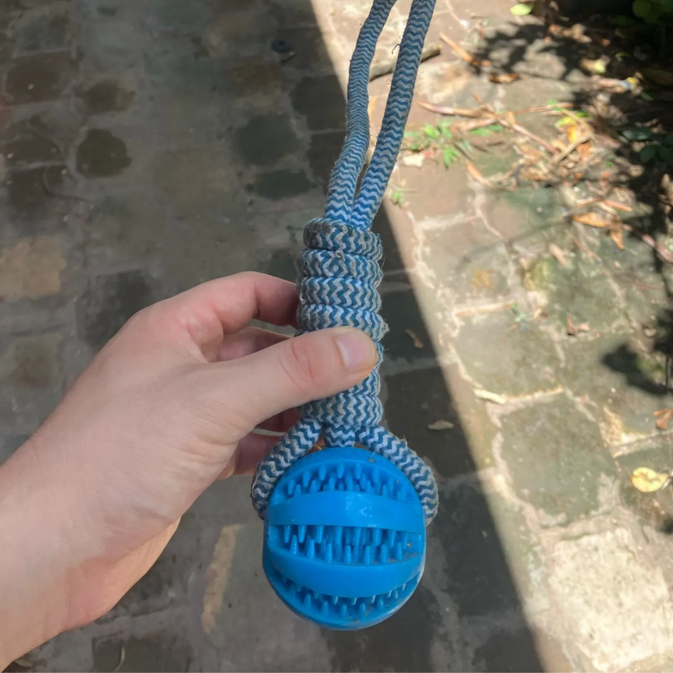 “Our dog is obsessed with the rope and treat ball. It’s tough, fun to throw, and keeps her busy when we’re out walking. Definitely helps out and about!”